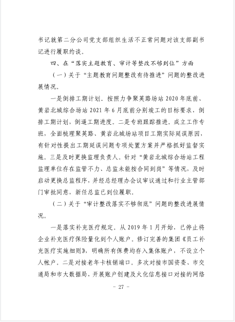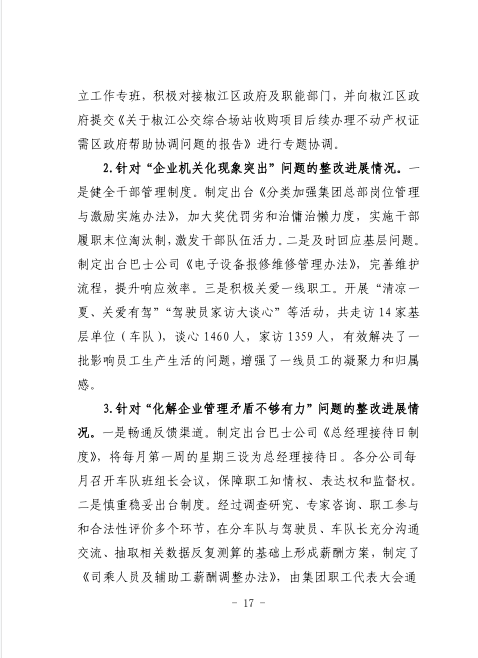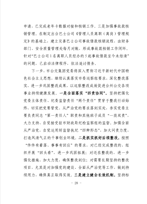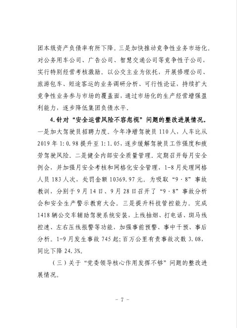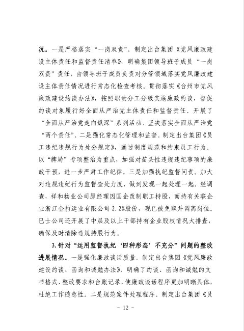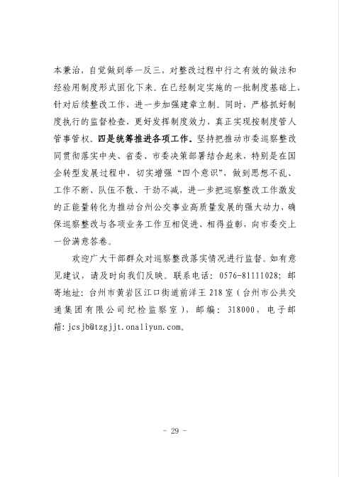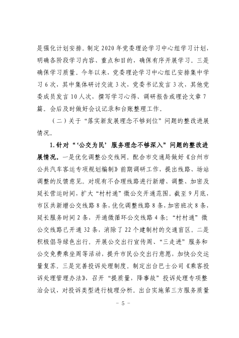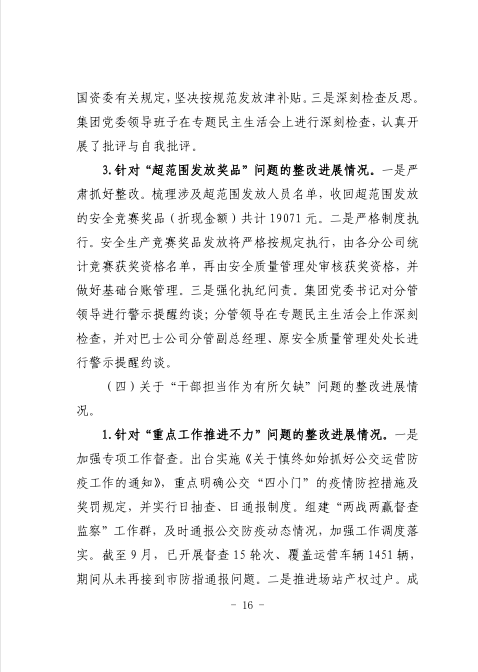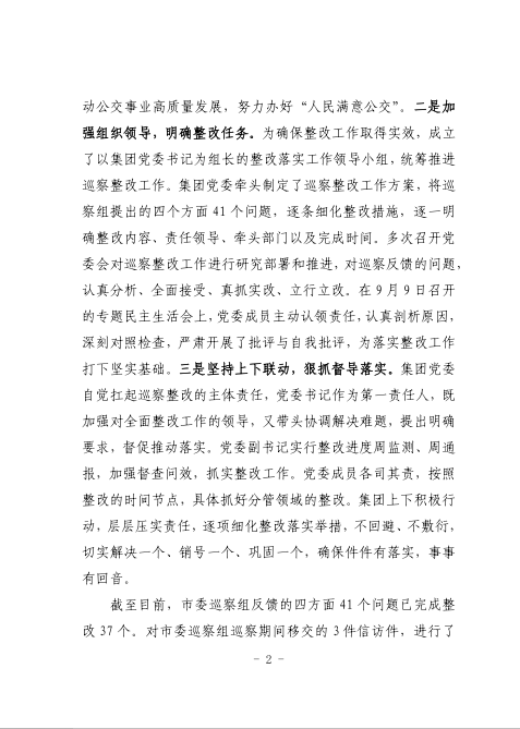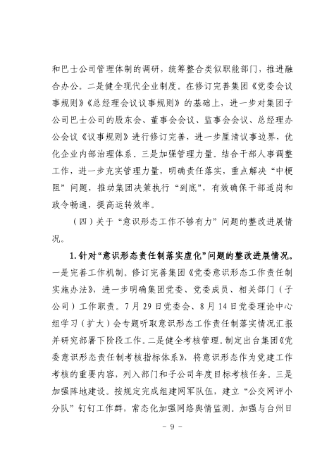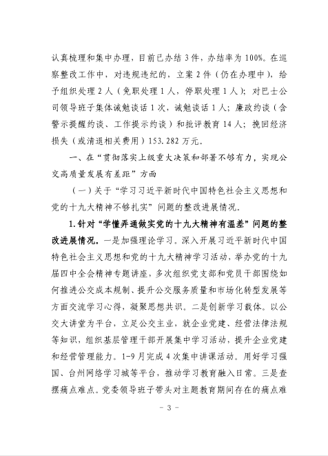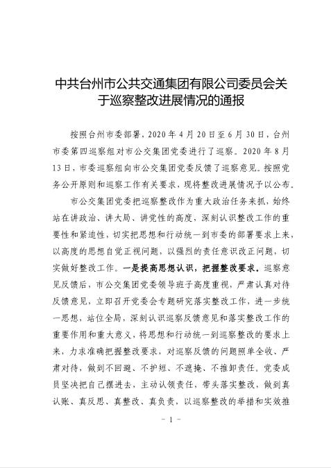 中共臺州市公共交通集團有限公司委員會關(guān)于巡察整改進展情況的通報