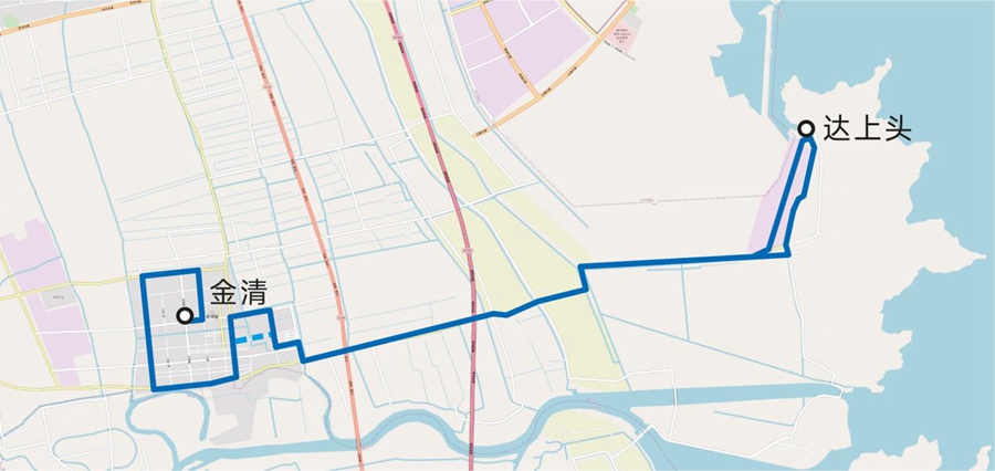 下行:達上頭、腿石咀、海峰、海燕、和諧橋、后黃嶼、黃瑯農(nóng)墾場、黃嶼涂、農(nóng)墾場西岸、八條河、解放坦、金清長橋、七條河西、普仁塘、下盟、牛澇里、南盟、五豐、雙盟、五豐閘、金清花園新村、金豐、金清中學東、金清中學、金清大道人民路口、勤勞小區(qū)、金清中心菜場、金清供電所、金清水廠、上塘、金水灣、金都雅苑、黃金海岸、春江名園、高升、路橋第二醫(yī)院、金清鎮(zhèn)政府西、金清客運中心。(取消站點:金清交警中隊、金豐北)