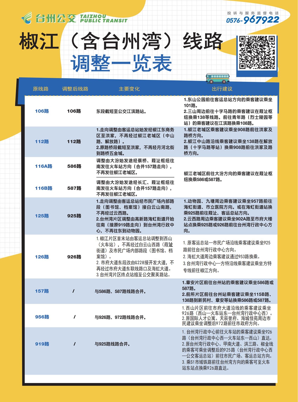 替代出行建議:西山片區(qū)前往市府大道沿線的乘客建議乘坐926路(西山—火車站東—臺州灣行政中心西);原國際人才公寓、天辰譽府、海城佳苑周邊市民建議乘坐972路前往市政府方向。
